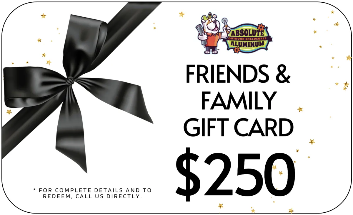 Thanks for taking our quick survey! Please accept this $250 Friends and Family Gift Card towards your next project of $5,000 or more - it's valid for the next 30 days.